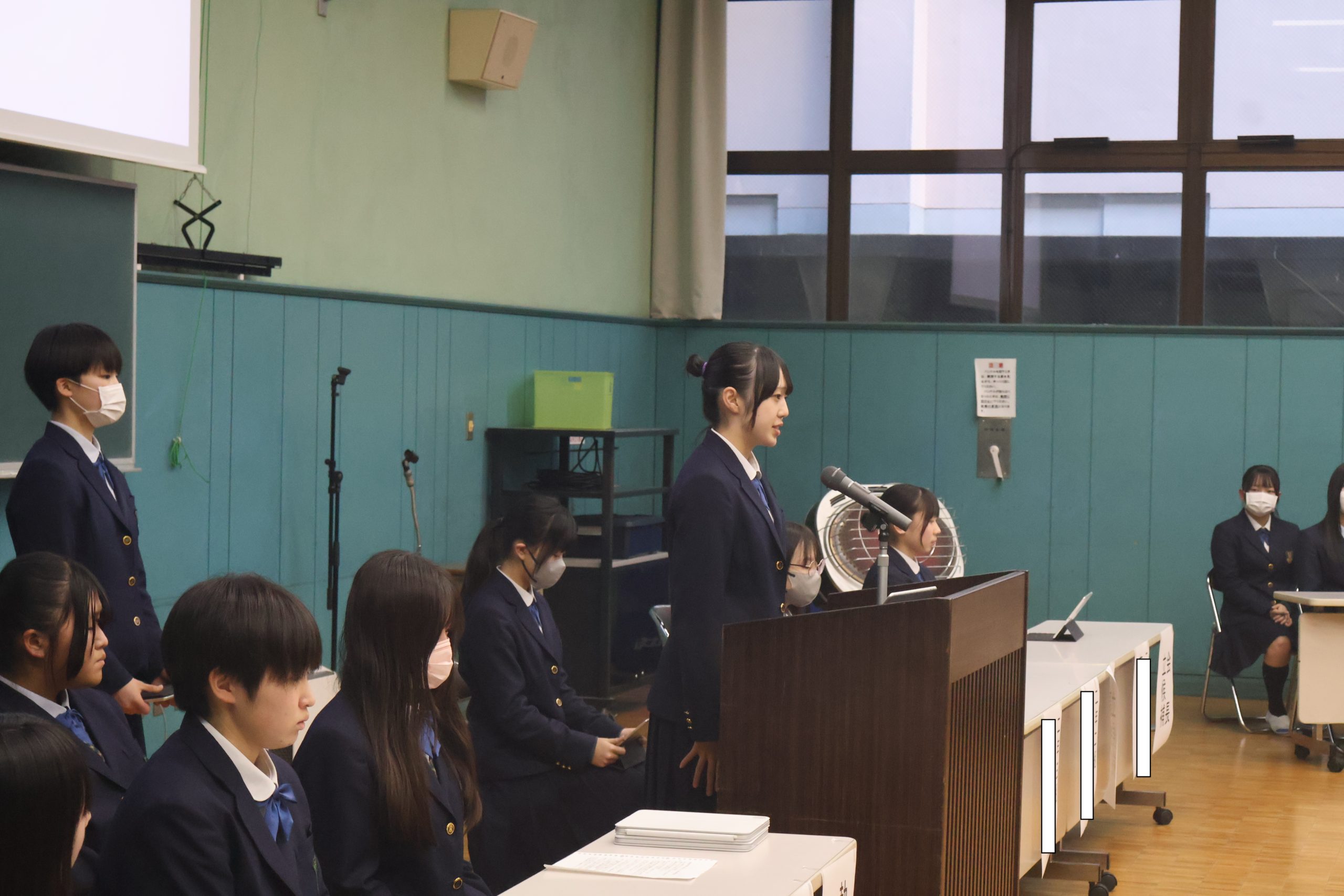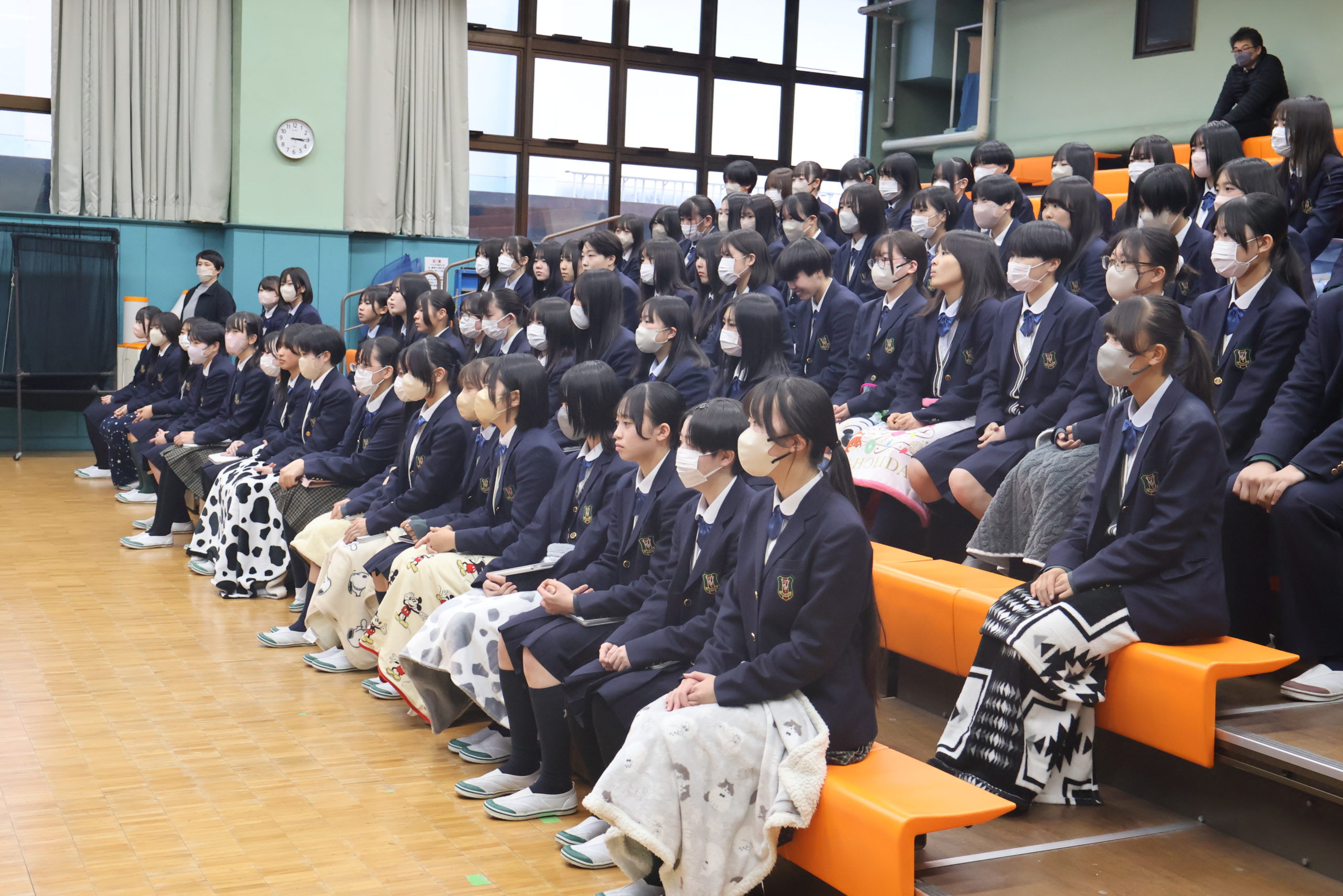 12月10日(水)に、令和8年前期生徒会役員選挙が行われました。学校の代表を決める演説会のため、生徒たちはそれぞれの候補者の演説に真剣に耳を傾けていました。
