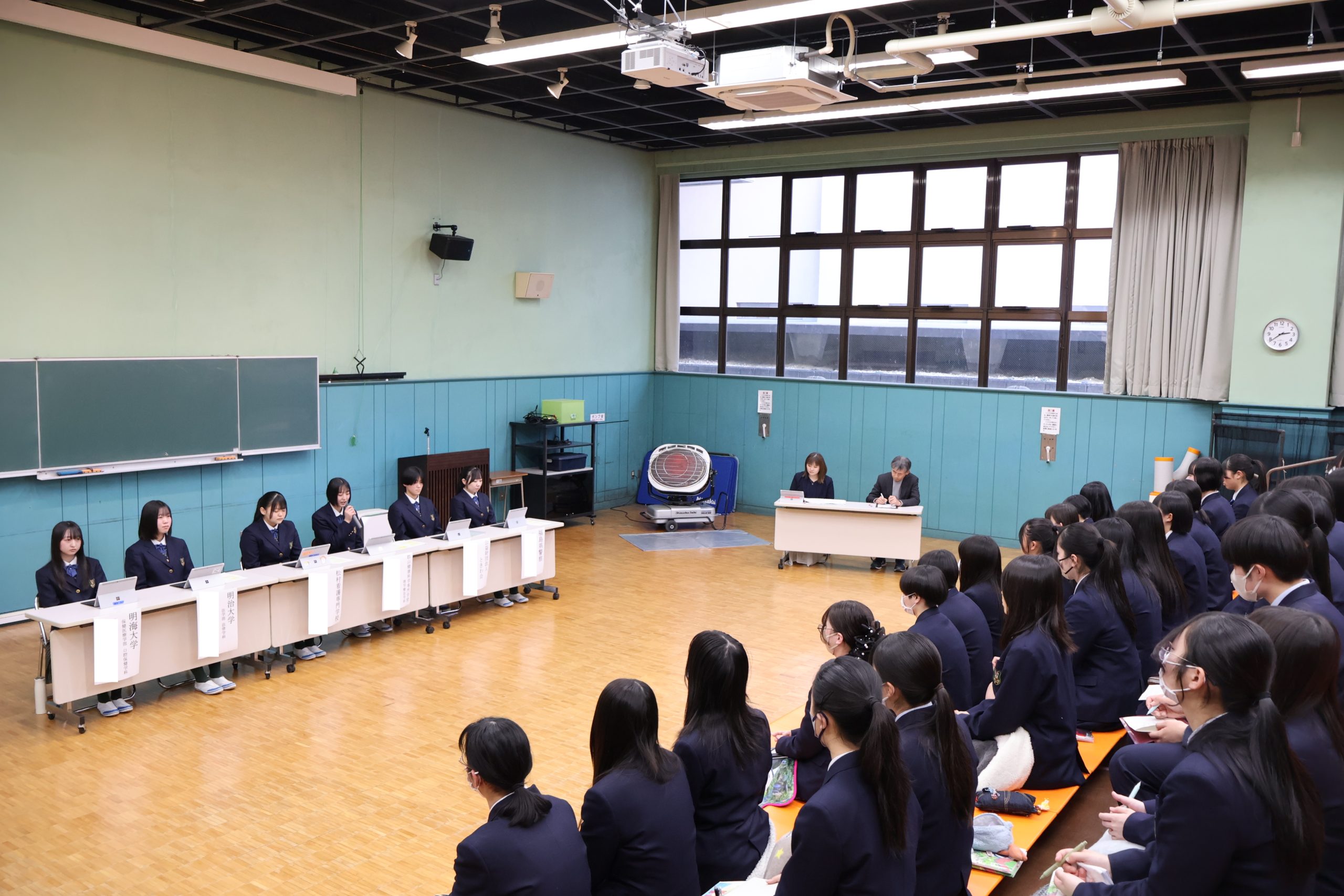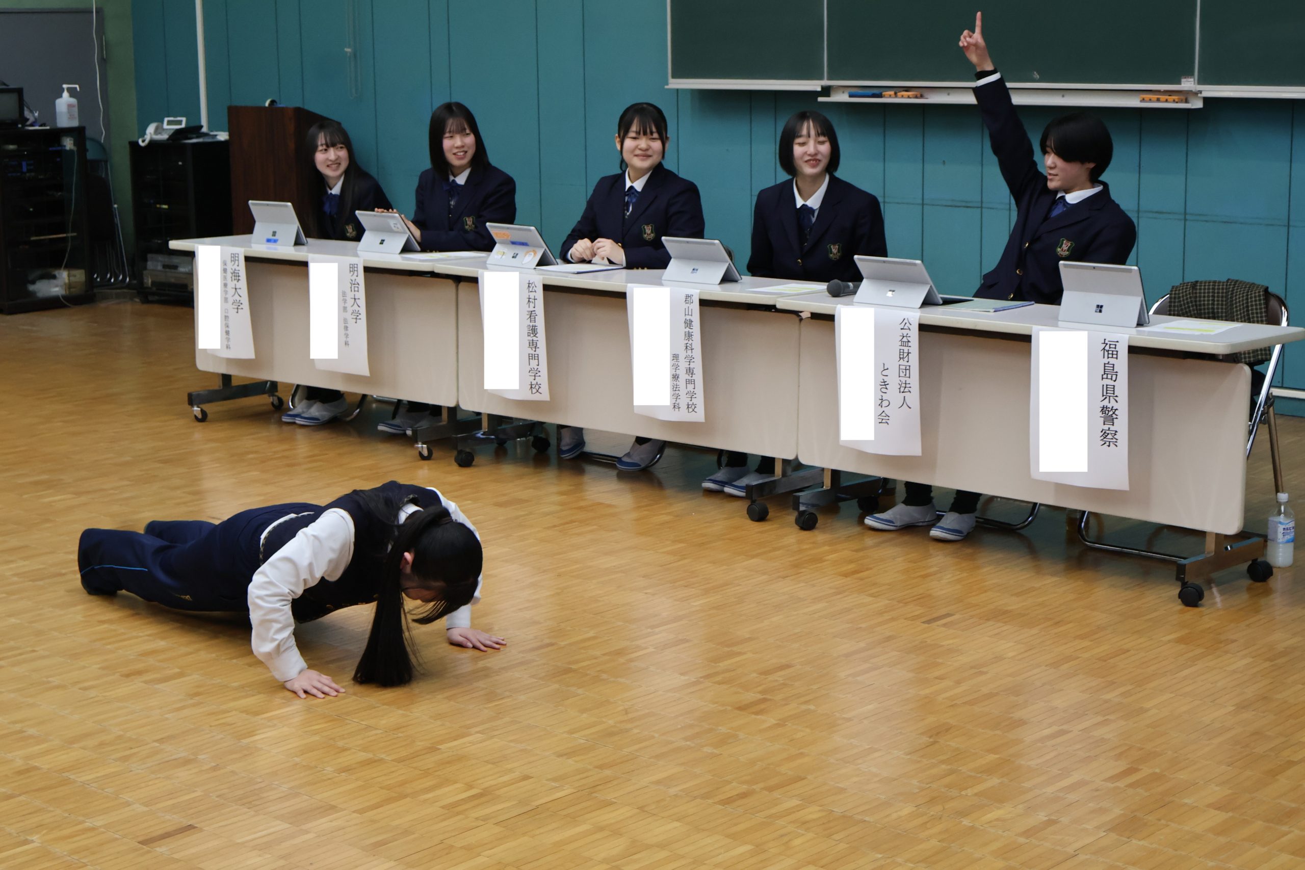 2月4日(水)の6・7校時目に「受験報告会」を実施しました。現時点(2月4日)で進路実現を勝ち取った高校3年生が、1・2年生たちに、受験のアドバイスや面接や実技試験の実演をしてくれました。今後の進路活動に向けて、先輩たちから具体的な話しをたくさん聞くことができ、貴重な時間を過ごすことができました。アドバイスをしてくれた3年生の皆さん、ありがとうございました。